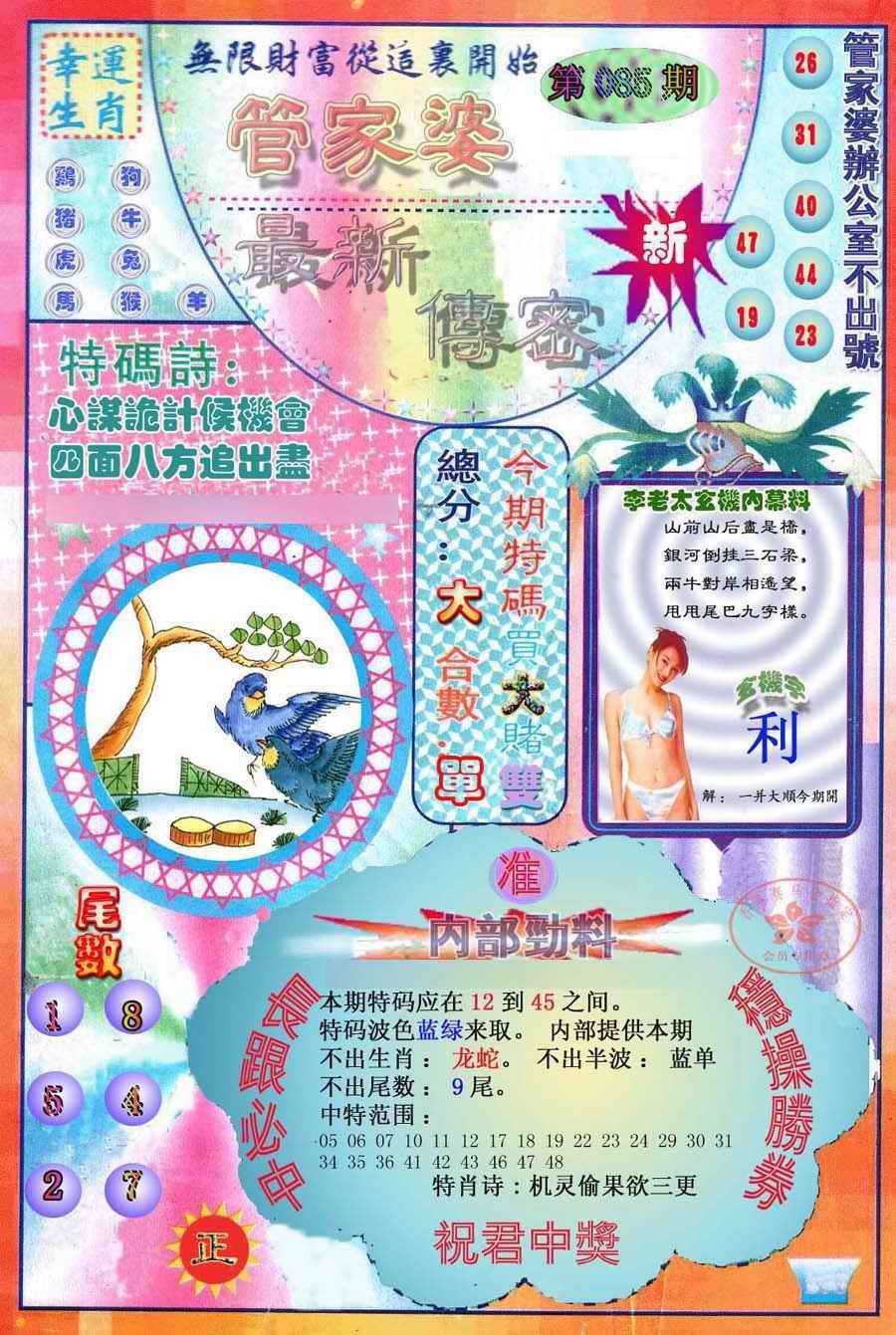 085期:最新管家婆传密