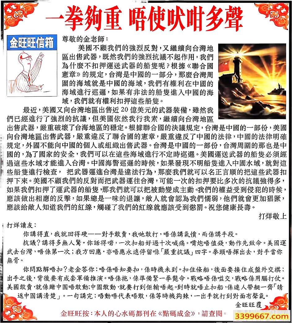 主题 :091期:金旺旺信箱彩民推荐→→《一拳夠重 唔使吠咁多》