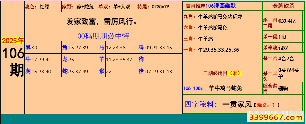 主题 :106期:小鱼儿30码期期中+幽默猜测