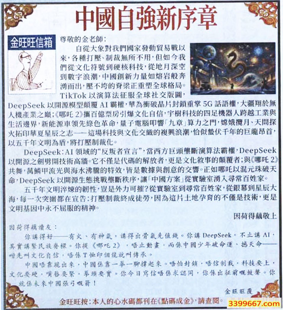 003期:金旺旺信箱彩民推荐→→《中國自強新序章》